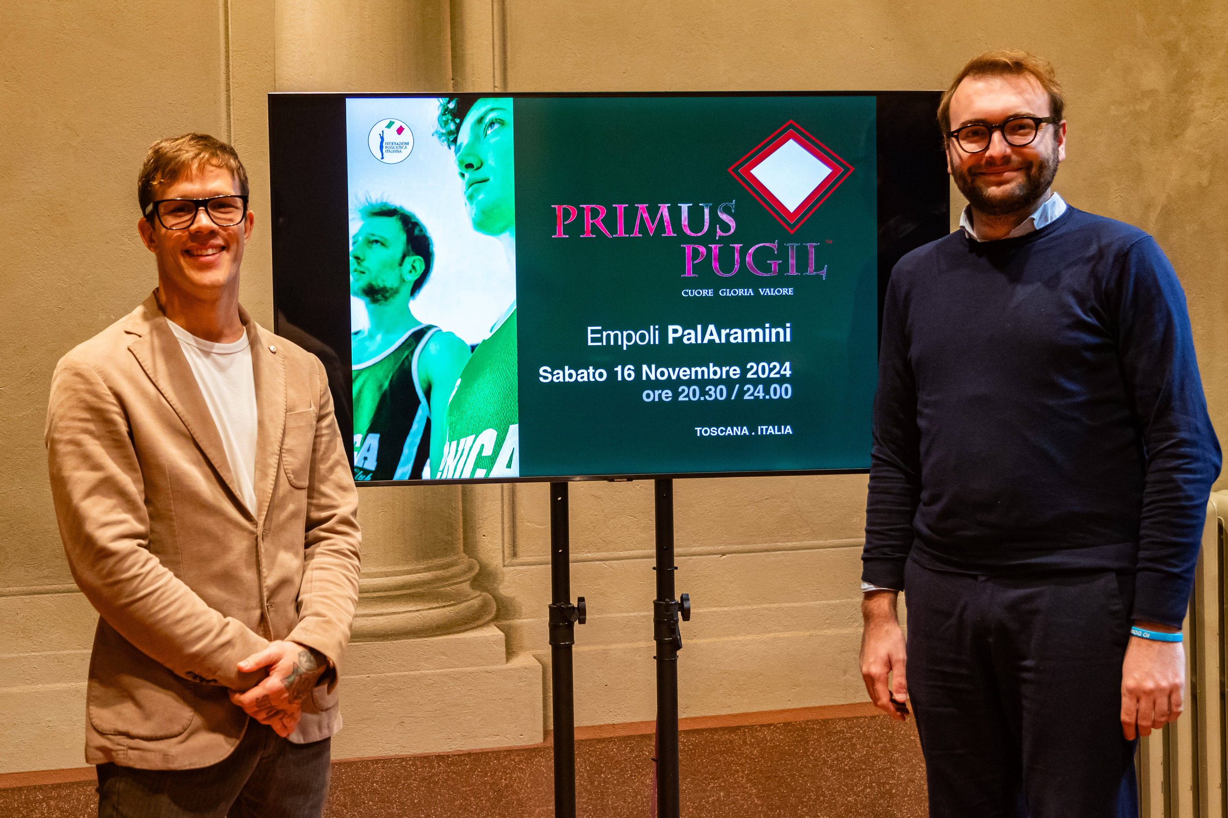 A presentare con gli organizzatori l'iniziativa, l'assessora allo Sport Laura Mannucci che ha commentato: "Primus Pugil è un'opportunità per la nostra città, un evento che pone lo sport al centro con una cornice di iniziative che lo rende aperto a tutti. Alcuni combattenti vengono da un passato difficile, hanno attraversato il tunnel della droga e molte difficoltà nella vita. Ma proprio grazie allo sport sono riuscite a cambiare e a rientrare nella vita quotidiana da protagonisti: questa è la funzione sociale dello sport che più apprezziamo".