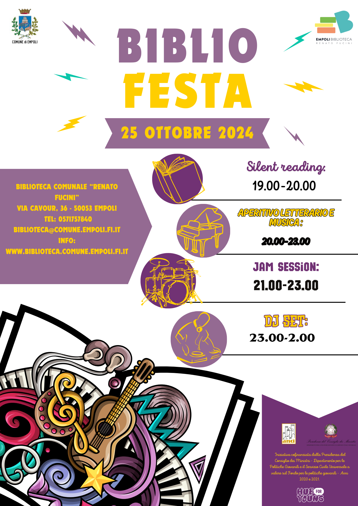AGGIORNAMENTO 25/10/2024. IN MERITO ALL'EVENTO IN OGGETTO, LA BIBLIOTECA COMUNALE 'RENATO FUCINI' ANNUNCIA CHE, A CAUSA DEL MALTEMPO PREVISTO PER LA GIORNATA, GLI EVENTI ALL'ESTERNO (JAM SESSION E DJ SET) SONO RIMANDATI. LA SERATA SI CONCLUDERA' INTORNO ALLE 23.