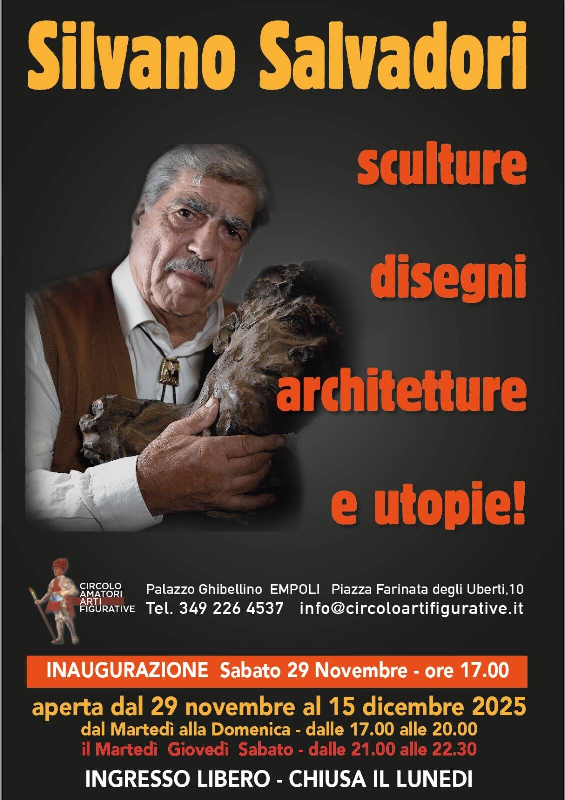Orario mostra: dal martedì alla domenica dalle 17 alle 20; il martedì, giovedì, sabato dalle 21 alle 22.30. Lunedì chiuso