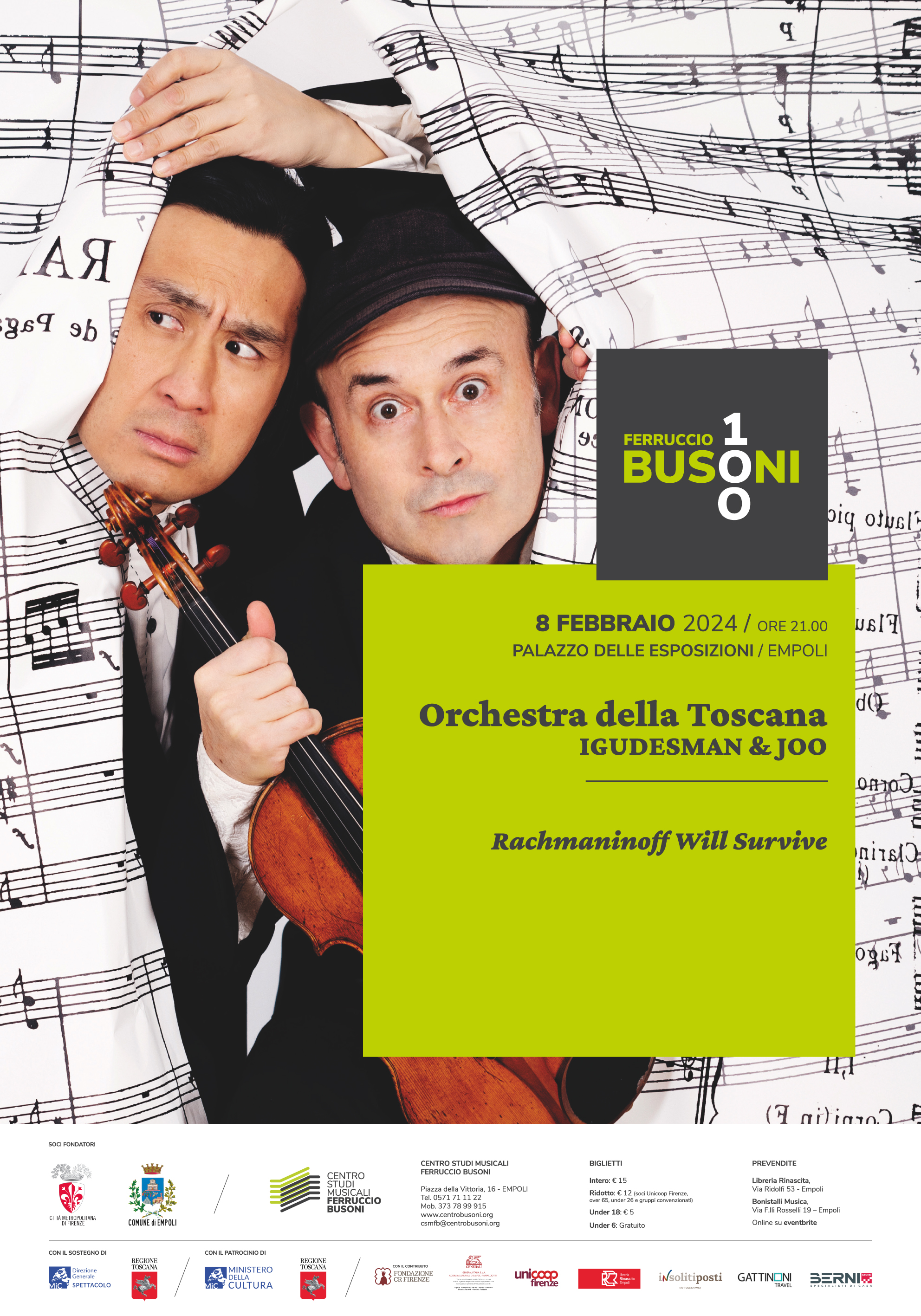 Per informazioni, sottoscrizione dei mini abbonamenti e acquisto biglietto singolo: Centro Studi Musicali Ferruccio Busoni (piazza della Vittoria, 16; tel. 0571 711122)
